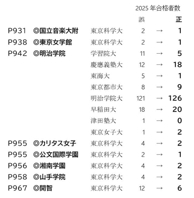 P918からの「2025・2020・2015年 高校別大学合格者数一覧」の中で、