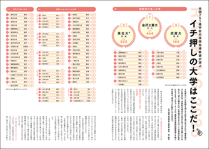 2026年度版 全国751進学校の進路指導教諭が選ぶ 「イチ押しの大学」はここだ!